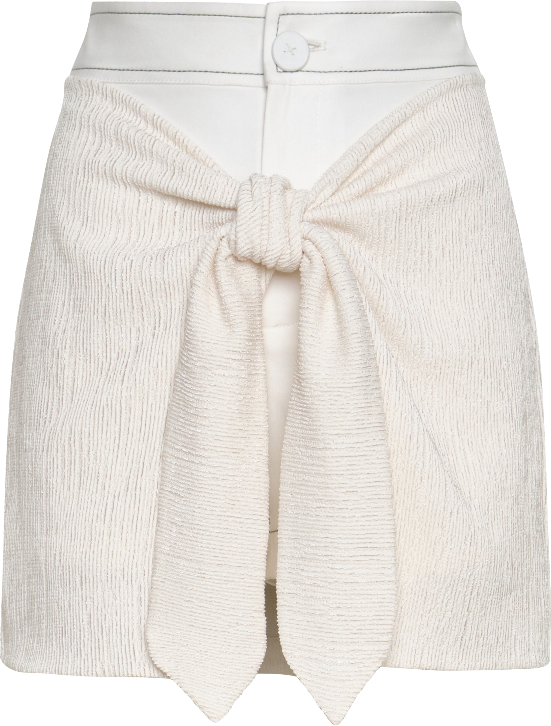 Short de tiro alto con falda tipo pareo fija sobrepuesta en crepé texturizado para anudar en delantero