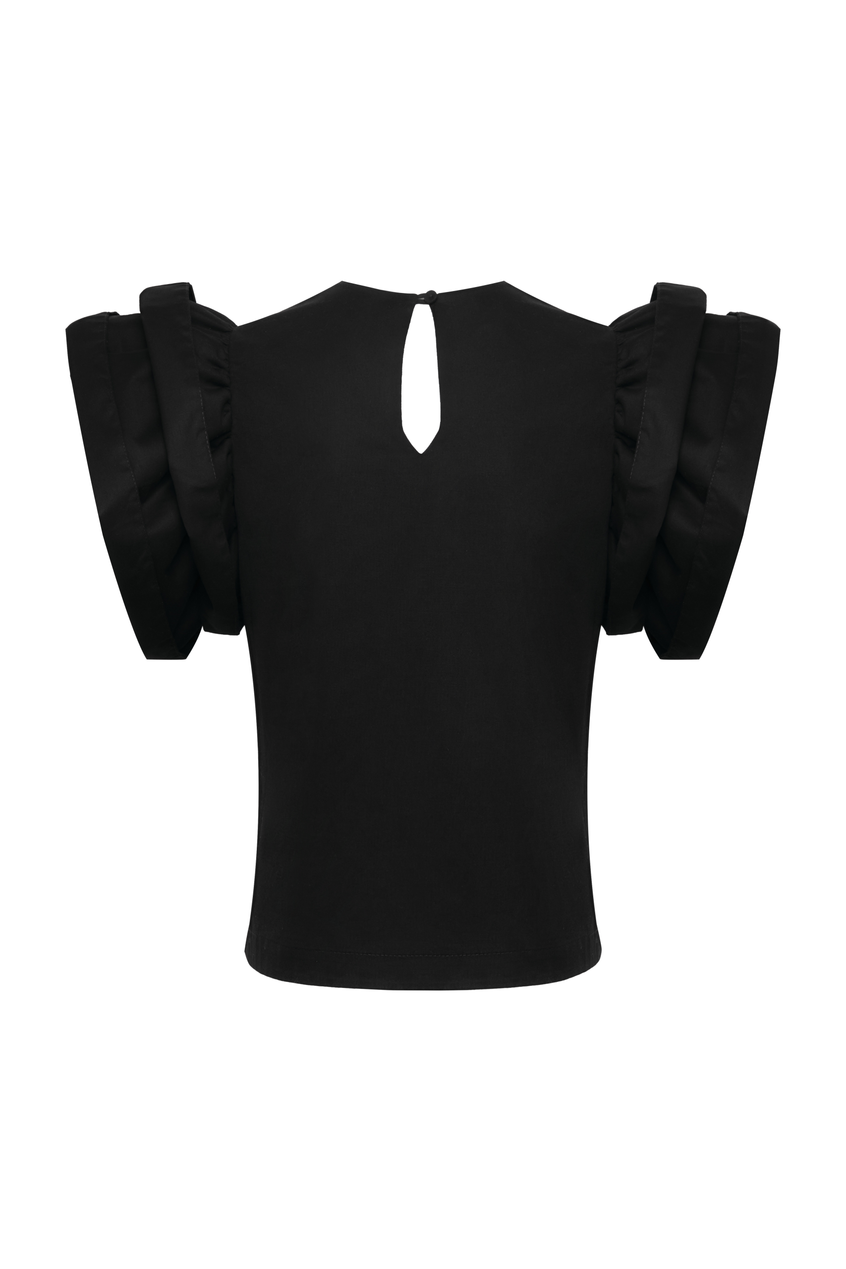 Blusa de algodón con escote redondo y mangas dobles con volumen.