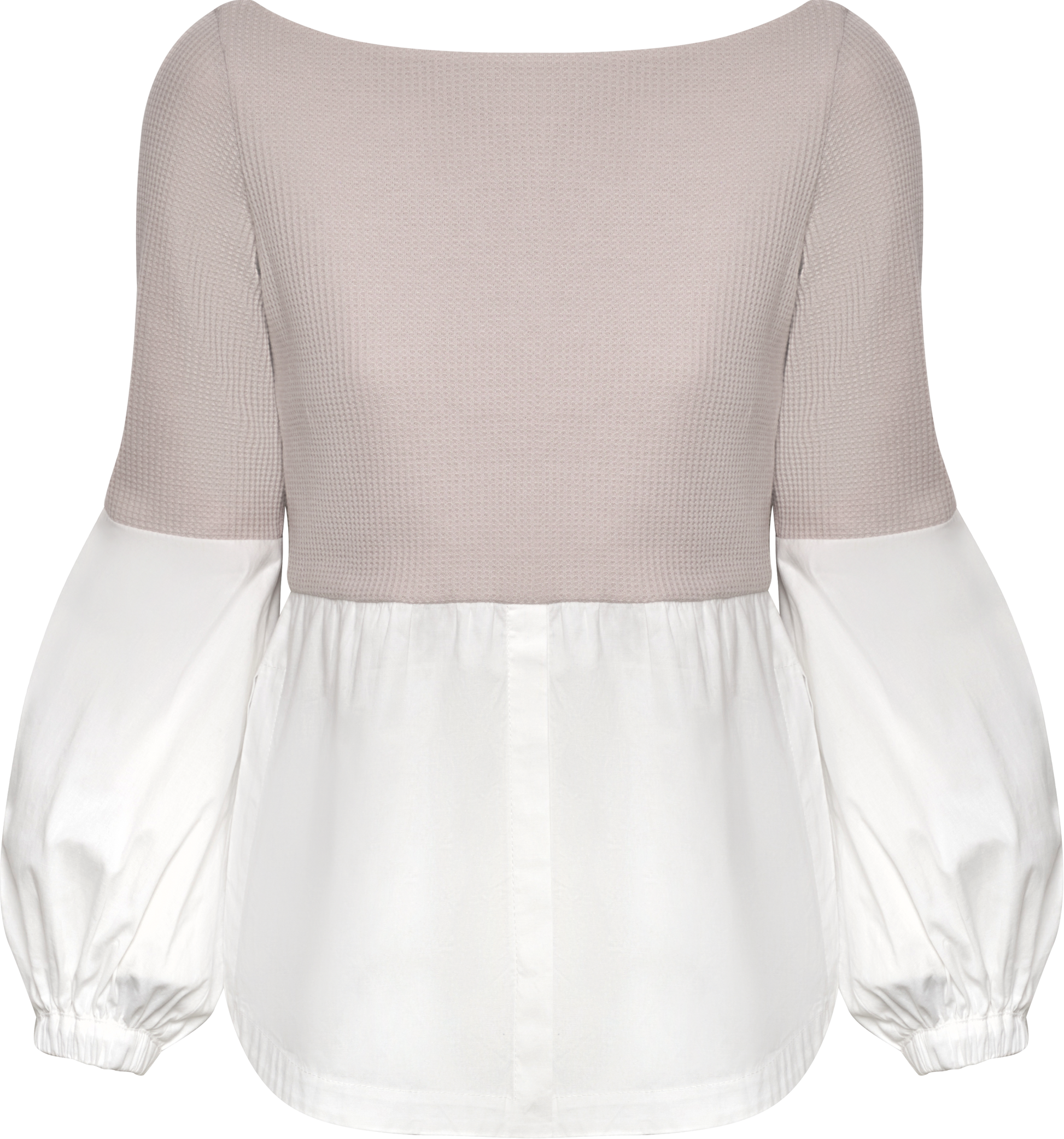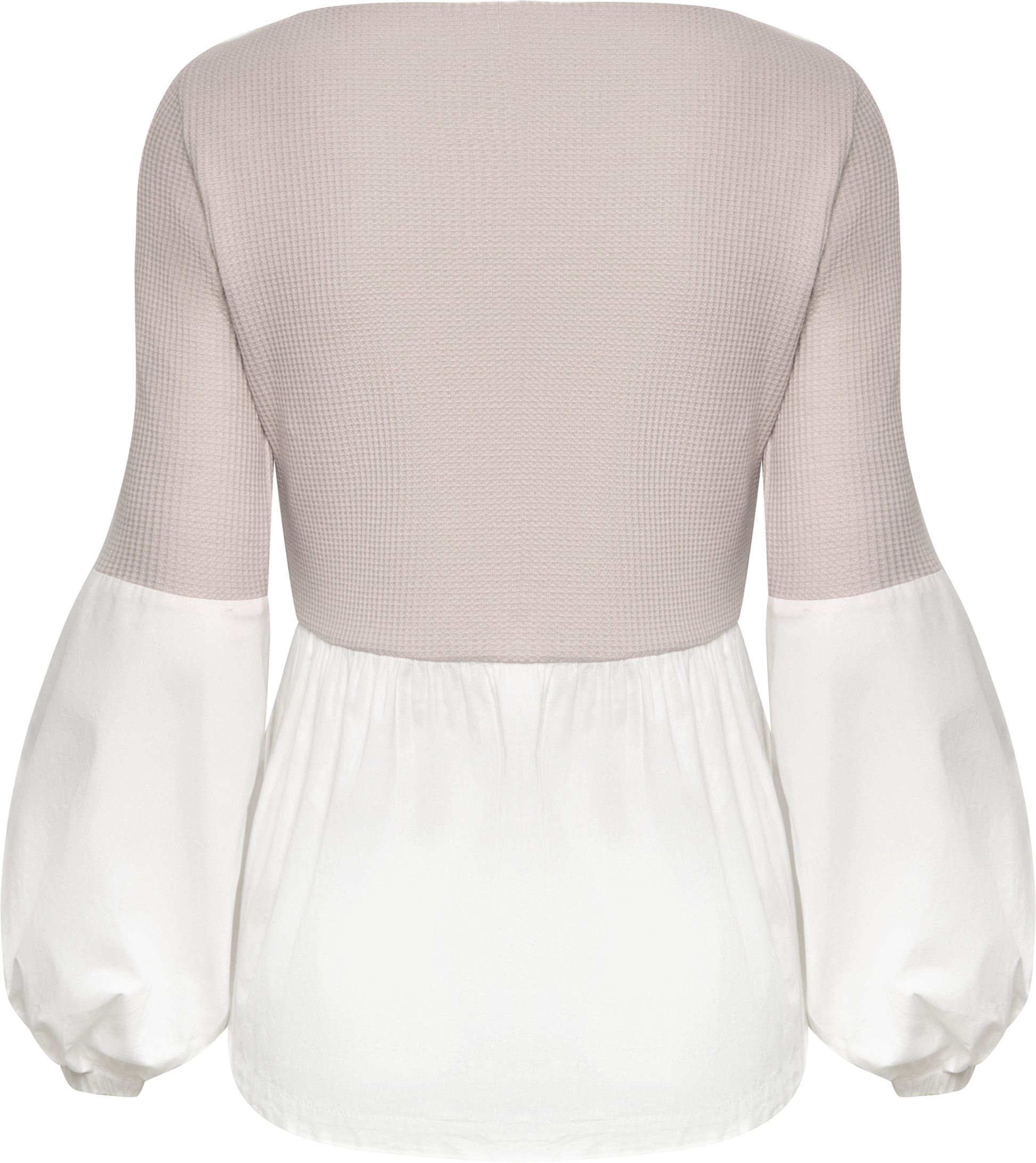 Blusa de manga larga voluminosa con contraste de textura y color.
