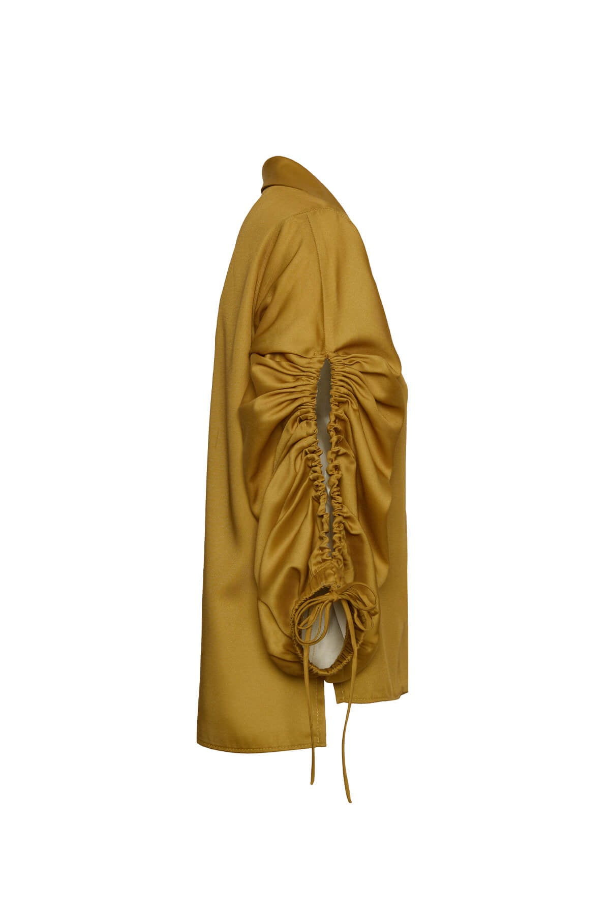 Camisa con abotonadura visible, manga larga con abertura zurcida y puño enresortado.