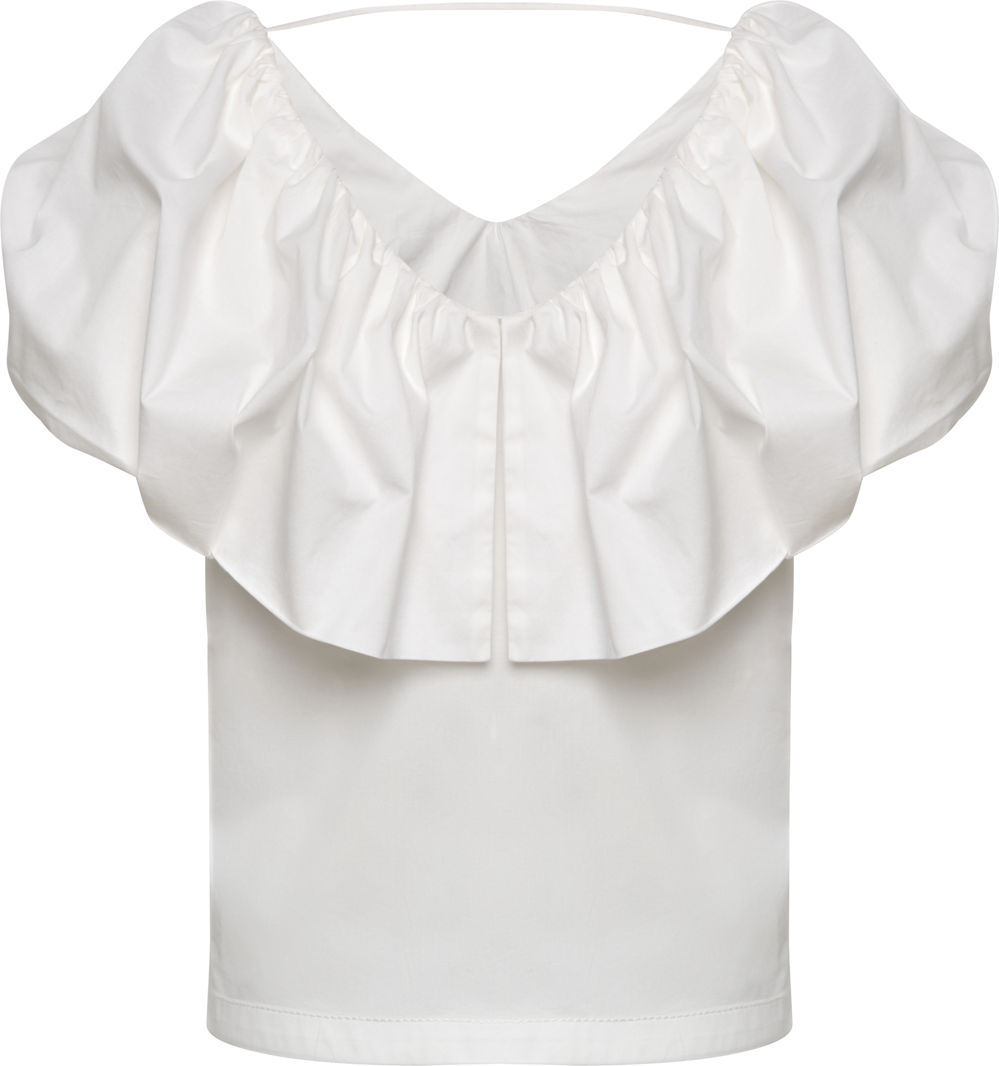 Blusa en algodón de escote redondo con volumen y manga corta.