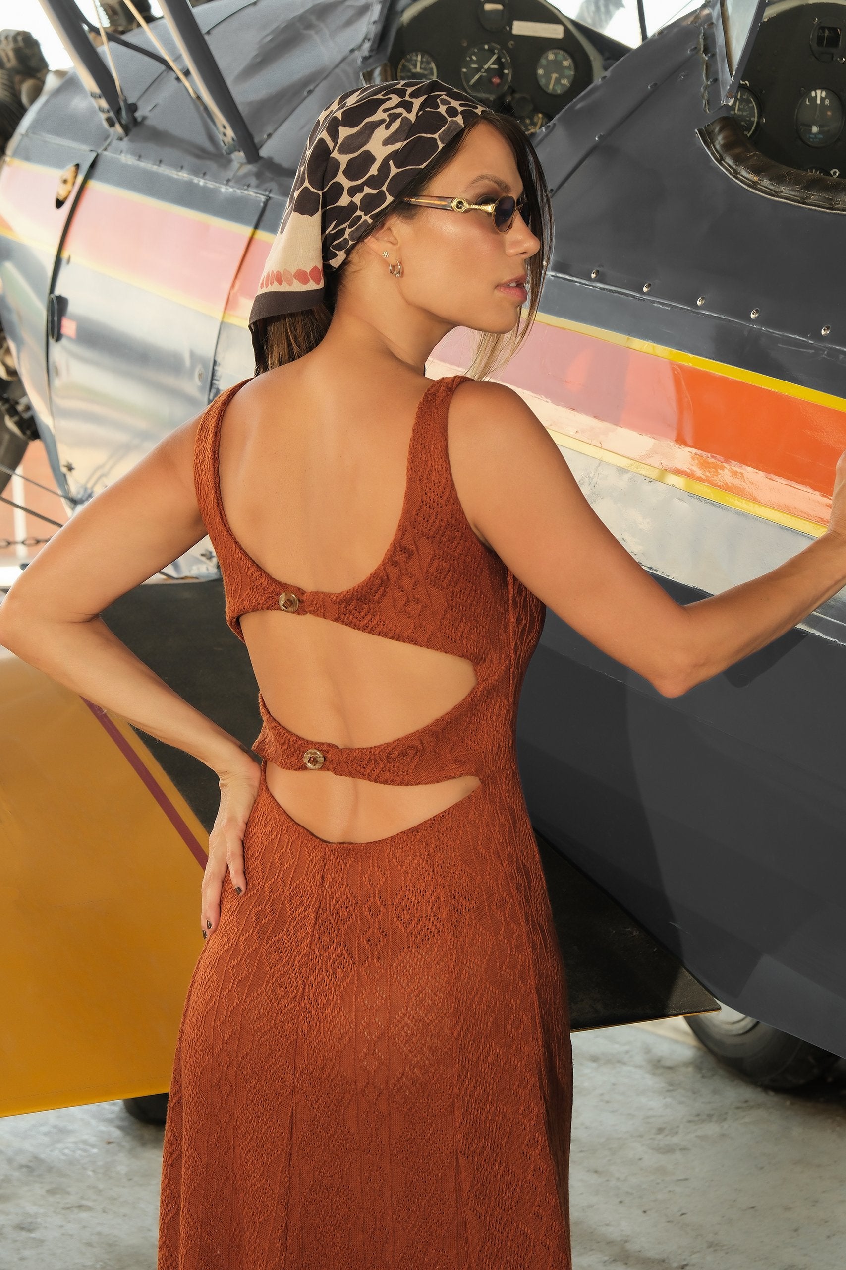 Vestido confeccionado en tejido de punto, suave y cómodo, ideal para un ajuste fluido y elegante. Presenta cortes que forman nesgas, generando vuelo y amplitud en el ruedo, lo que aporta movimiento y ligereza a la prenda. La espalda incorpora cortes estratégicos que crean un escote sutil, femenino y delicado. Se ajusta mediante botones decorativos, que además de funcionales, acentúan el detalle en la parte posterior. Un diseño versátil y sofisticado, perfecto para transitar con estilo entre lo casual y lo especial.